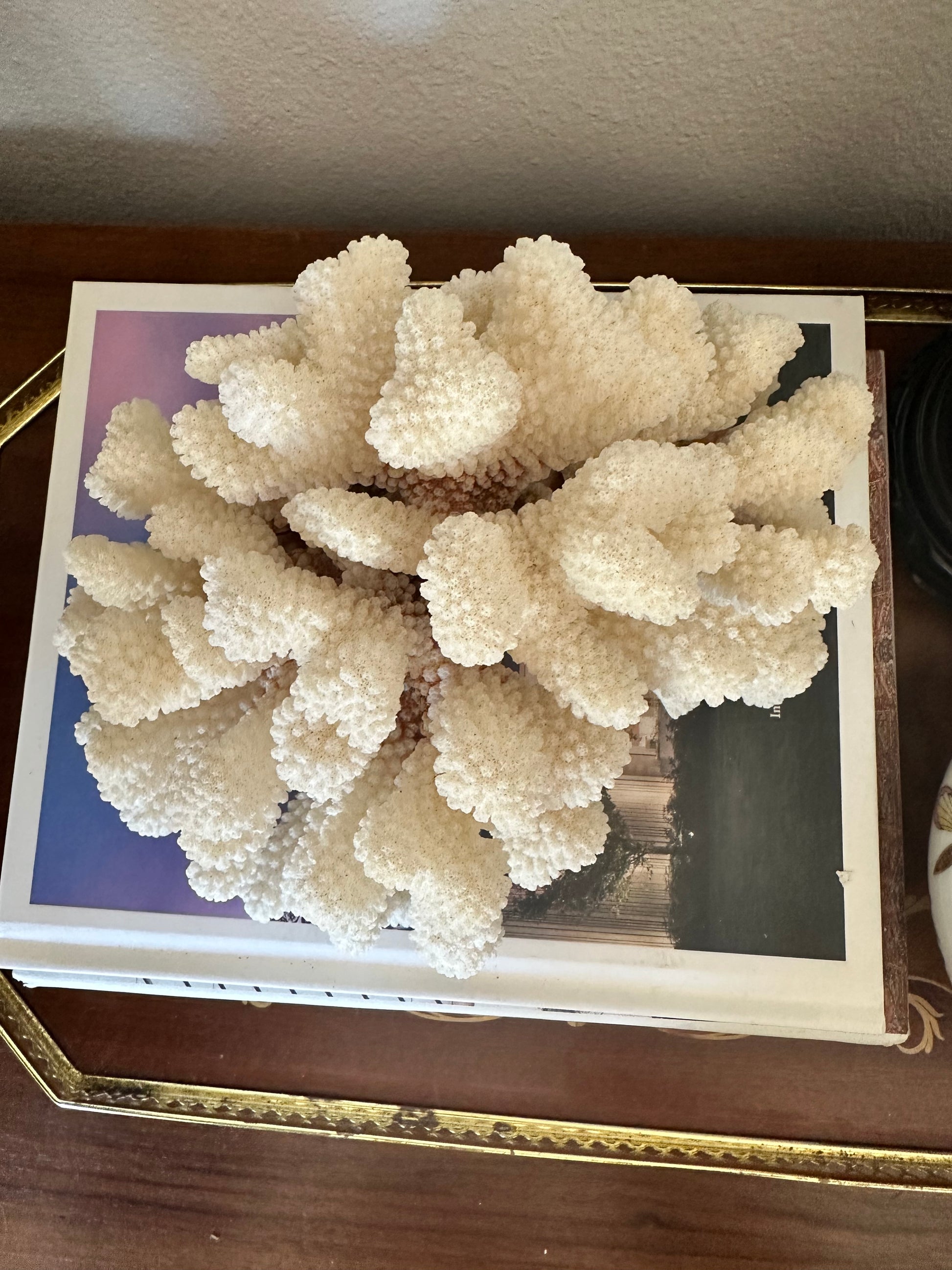 Natural Cat Paw Coral Specimen, White Coastal Decor, 8.75”